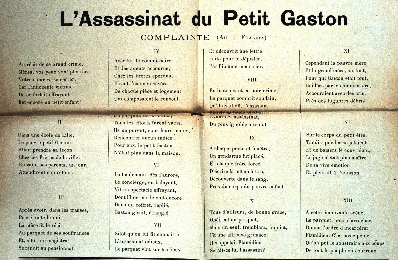 - Un crime horrible, un enfant assassiné et violé à Lille, complainte