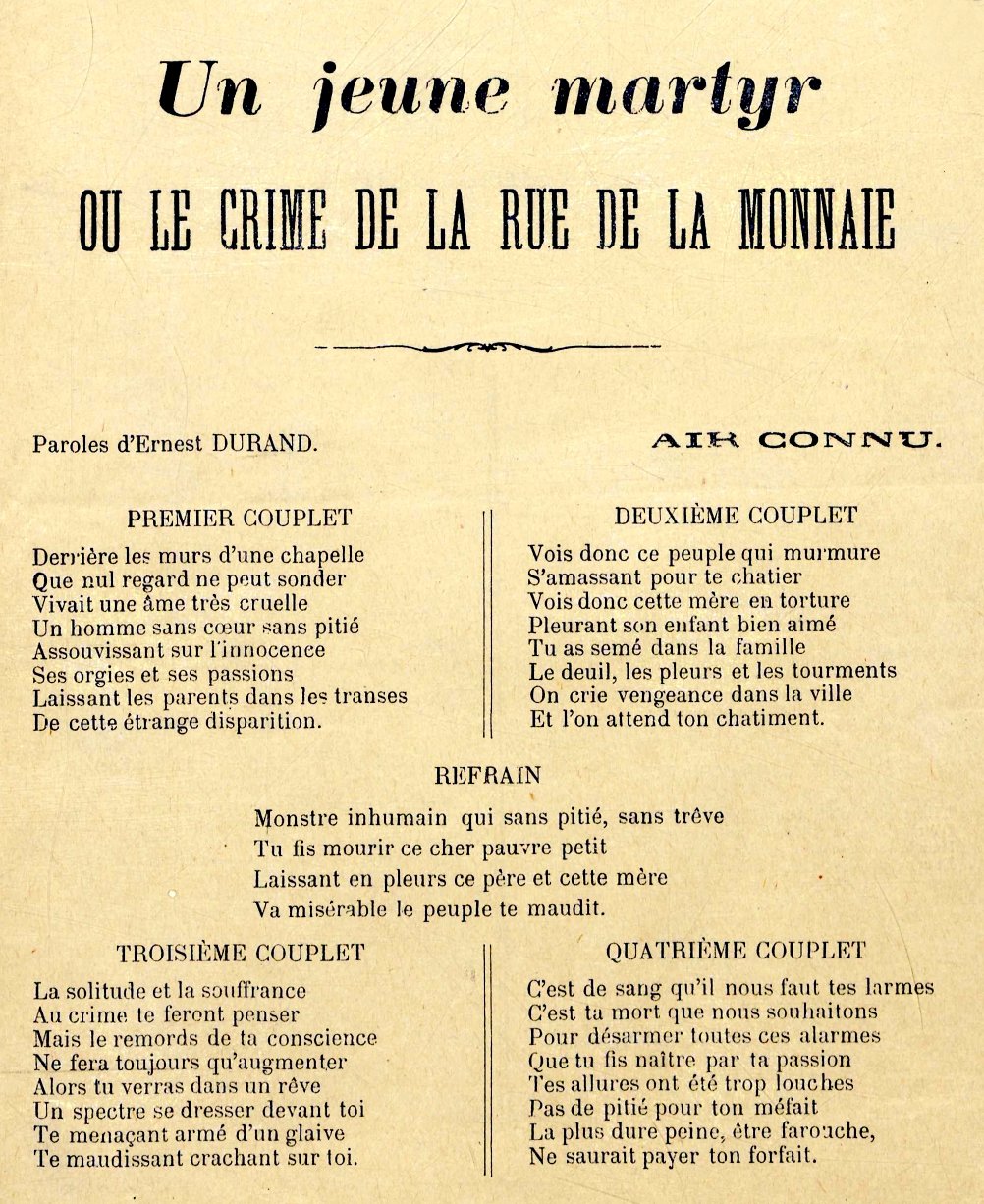 - Un crime horrible, un enfant assassiné et violé à Lille, complainte